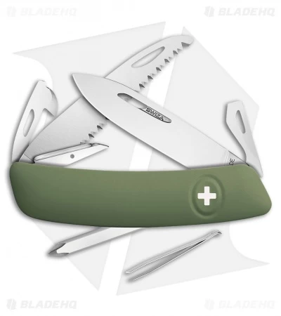 This Swiza D06 pocket knife offers a revolutionary redesign of the traditional Swiss pocket knife. It features a soft touch polymer handle with a rubberized texture for a sure grip in difficult conditions. The blade is made from 440 stainless steel with a mirror finish. It locks in place with a compression lock mechanism that is easily released by pressing the Swiza cross button.
